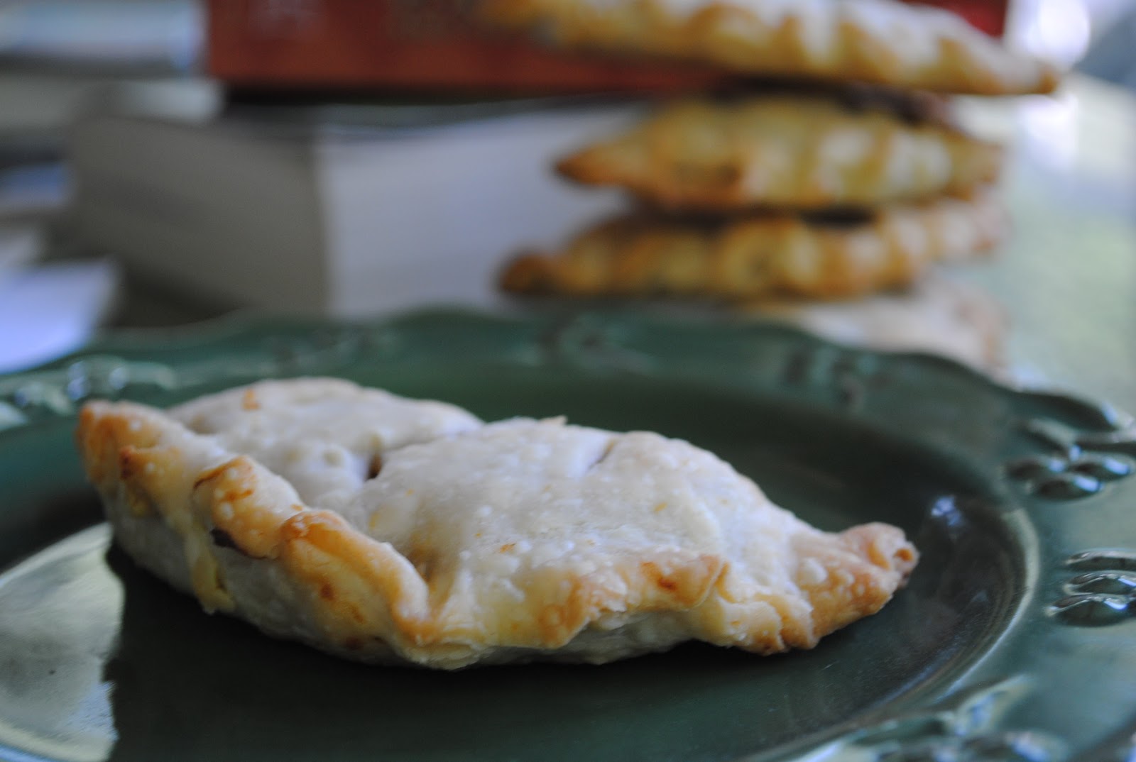 Fold the pie crust over and crimp the edges closed. Cut slits in the tops to allow venting. Mine are lightning bolt shaped. Cute, right?